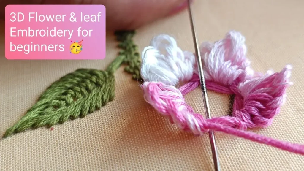 A 3D embroidery tutorial teaches building height with padding, knots, and layered stitches to create dimension and tactile texture. It uses 3D embroidery techniques to achieve raised elements that catch light and invite touch, unlike flat traditional embroidery. This approach emphasizes texture embroidery stitches as a core method.
