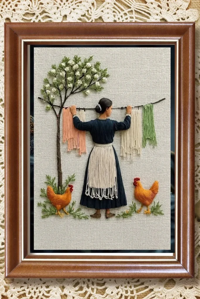 The dimensional, raised elements of 3D embroidery wall art invite closer inspection and touch, making the piece feel alive rather than flat. Depth and shadow shift with the room’s lighting, giving your wall a dynamic focal point that changes with the day. This tactile quality distinguishes handmade textiles from standard wall art prints.