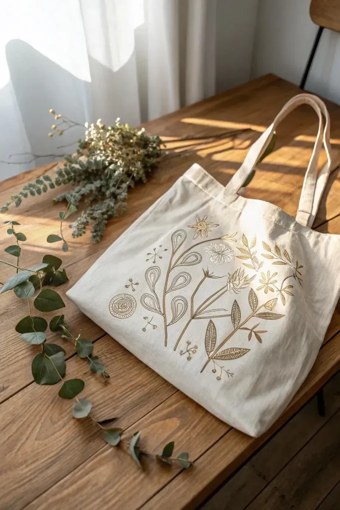 • Upcycled clothing embellishments: Embroider thrifted denim, linen shirts, or vintage bags.
