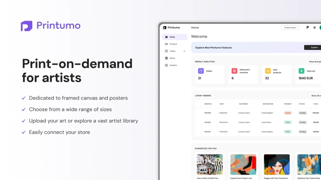 Print on Demand for Artists (POD for artists) is a fulfillment model where you upload your artwork to a POD platform, choose products such as wearables and decor, and the platform prints and ships each item only after a customer places an order. There’s no need to stock inventory, invest in equipment, or handle fulfillment logistics. Artists retain creative control over licensing and pricing while the POD provider handles printing quality, production, and shipping.