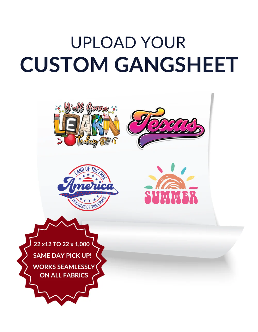 The ultimate scaling solution for high-volume brands and creators. Our Custom DTF Gangsheets allow you to maximize efficiency by grouping unlimited designs, sizes, and colors onto a single continuous roll. Utilizing high-density CMYK+White ink technology and premium flexible adhesives, these transfers ensure vibrant color accuracy and extreme durability across all fabric types. Cut costs, minimize waste, and streamline your production with ready-to-press sheets designed for 50+ washes.